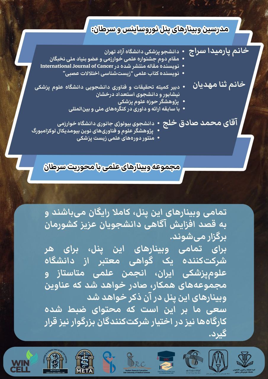 انجمن علمی متاستاز دانشگاه علوم پزشکی ایران با همکاری نشریه متا، مجموعه وینسل، کمیته تحقیقات و فناوری دانشجویی دانشکده های پیراپزشکی، توانبخشی، مدیریت و اطلاع رسانی پزشکی دانشگاه علوم پزشکی نیشابور برگزار میکند