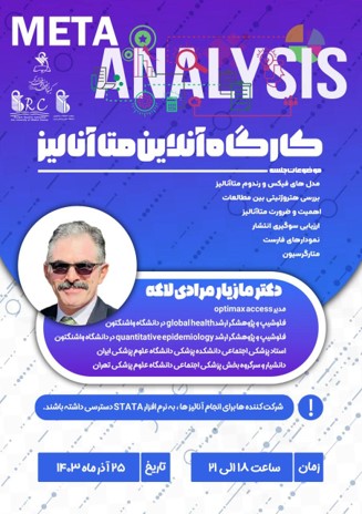 به اطلاع میرسانیم کارگاه آنلاین «متاآنالیز» در روز یکشنبه مورخ ۲۵ آذر ماه ۱۴۰۳ با تدریس جناب آقای دکتر مازیار مرادیلاکه (استاد و پژوهشگر مرکز تحقیقات بیماریهای گوارش و کبد)، به همت کمیته تحقیقات پژوهشی دانشکده پزشکی دانشگاه علوم پزشکی ایران، به صورت رایگان از ساعت ۱۸ الی ۲۱ و بهصورت آنلاین برگزار شد.